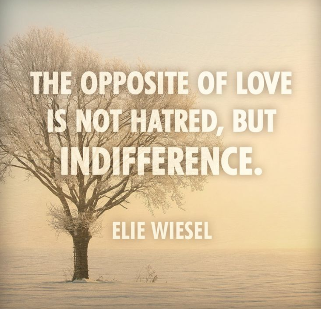 The Holocaust survivor & author Elie Wiesel shared the following in regards to indifference: