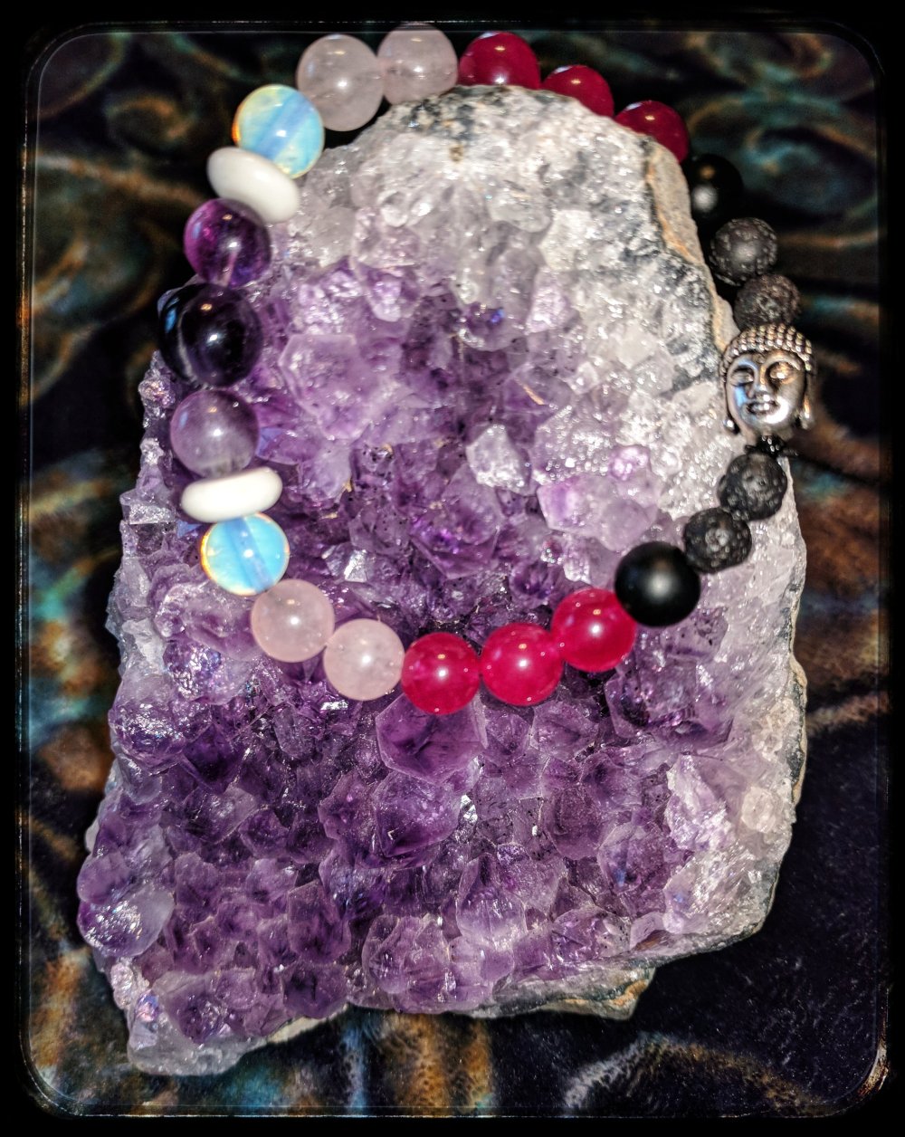 (Lava, shungite, Malaysia purple Jade, rose quartz, opalite, flourite, amethyst)