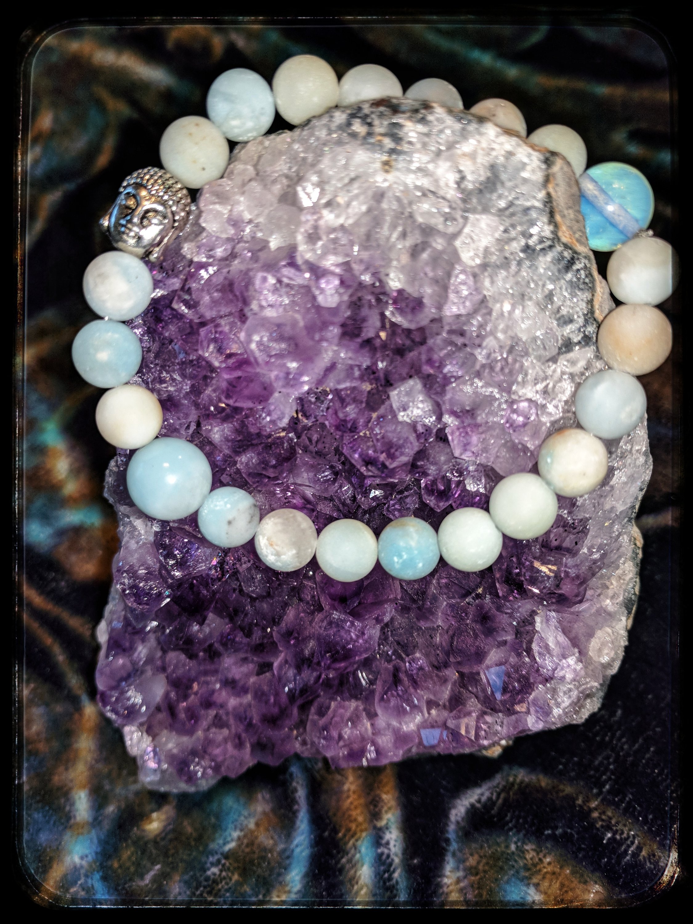 (Lava, shungite, Malaysia purple Jade, rose quartz, opalite, flourite, amethyst)